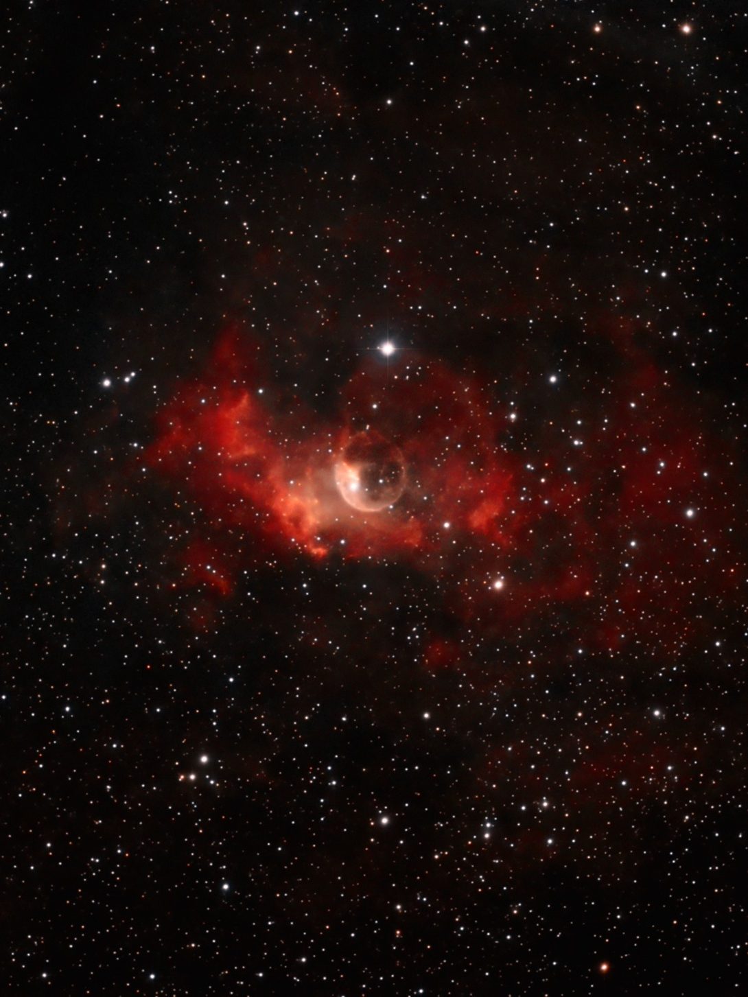 Für mich einer der schönsten Nebel ist der Bubble-Nebel, der sich im Sternbild Kassiopeia befindet und ca. 7.100 Lichtjahr entfernt ist.